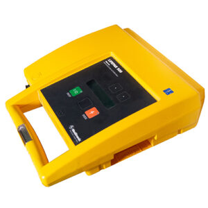 - Portable, battery-powered automated external defibrillator designed for ease of use.